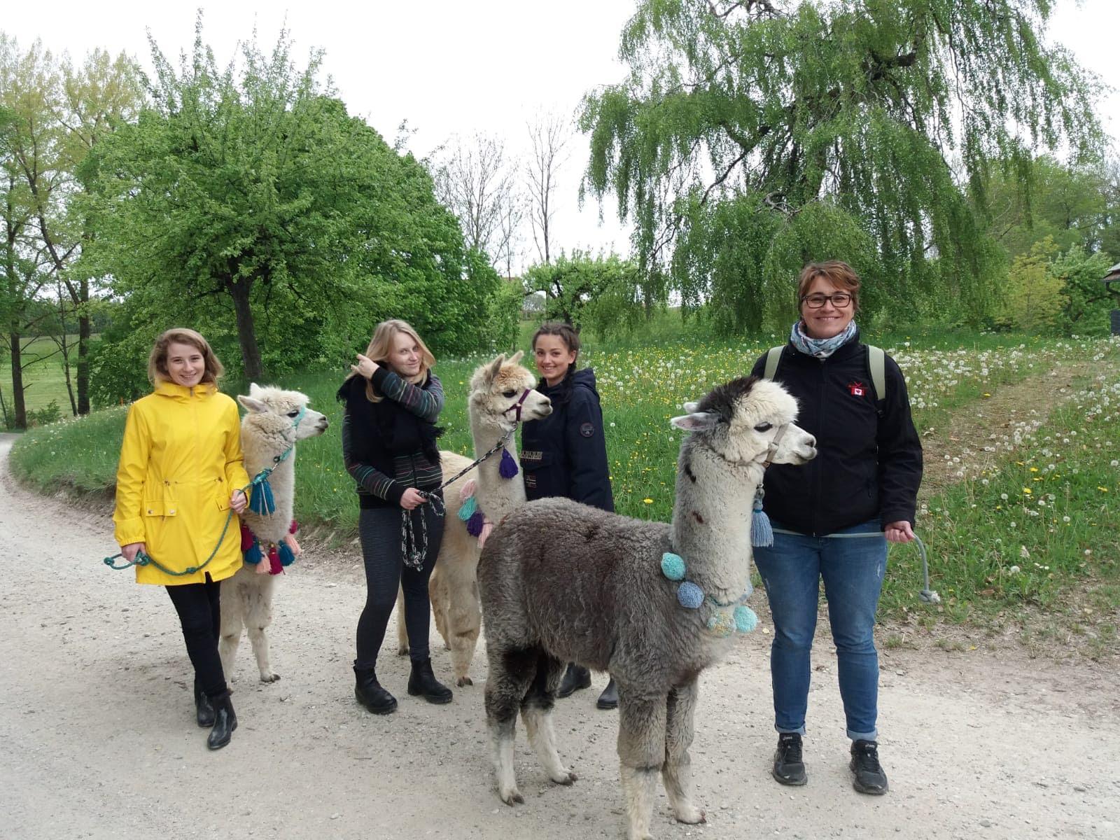 Nach einer äußerst informativen und interessanten Einführungsrunde machten wir uns mit den Alpakas auf den Weg.