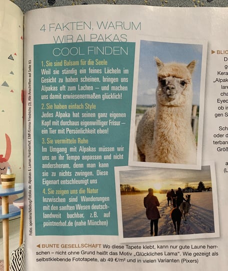 Wir haben eine Wanderung und Yoga auf der Alpakaweide gemacht.